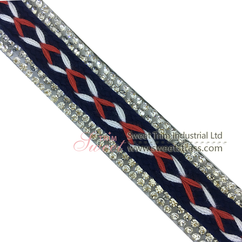 Indian style fashion stripehot fix rhinestone mesh trimming